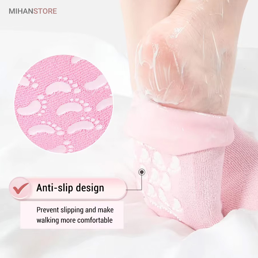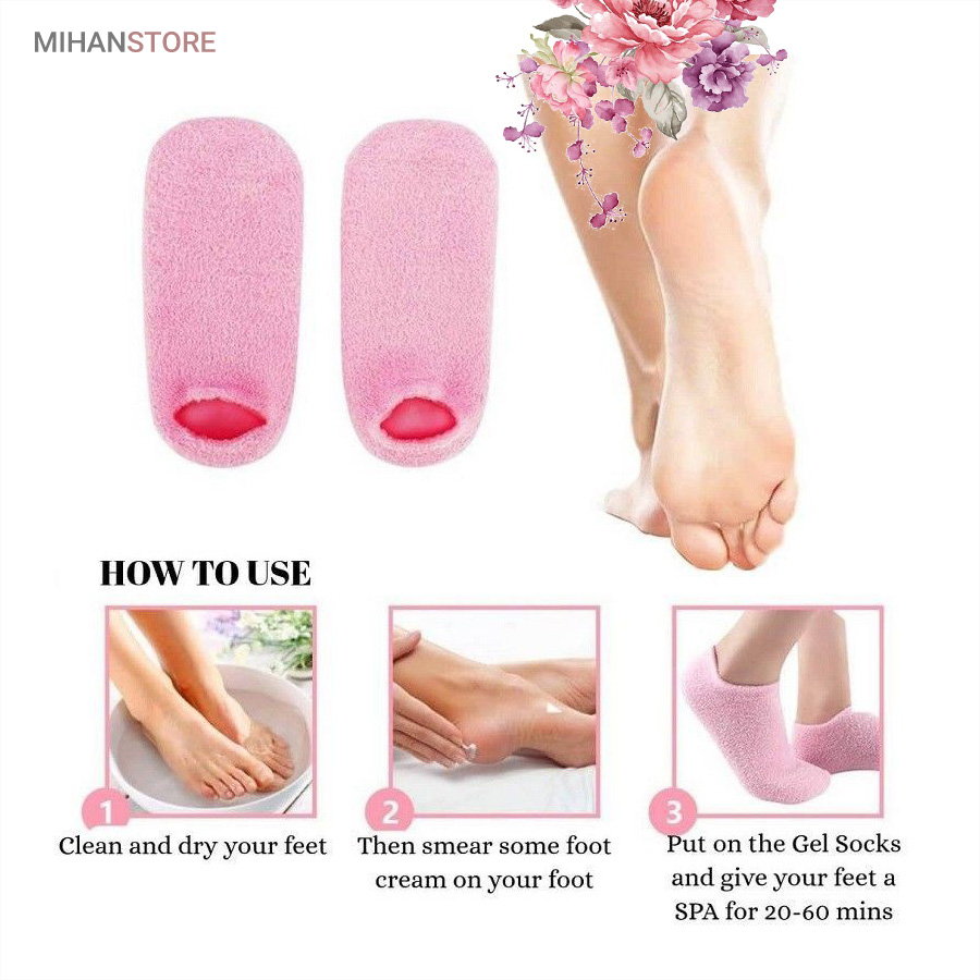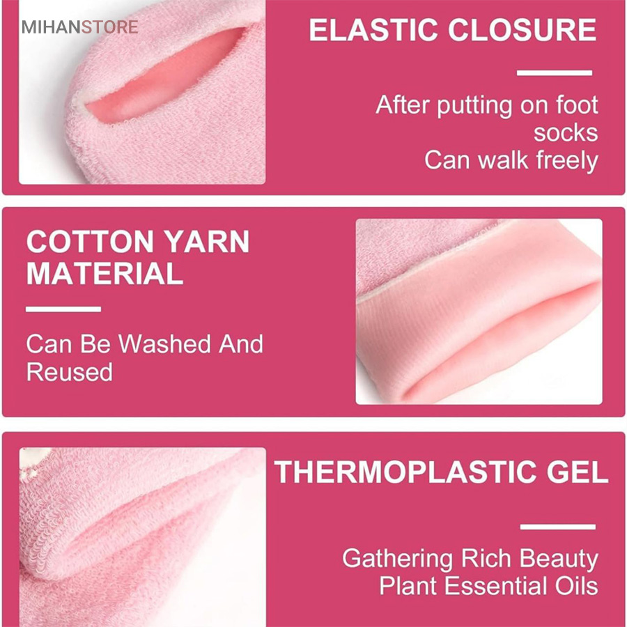 استفاده از جوراب پاپوش طبی مراقبت و ضد ترک پا Spa Gel Socks نه تنها باعث تسکین خشکی ترک پاشنه پا می شود، همچنین می تواند کل پوست پا را مرطوب کرده و ظاهری طبیعی و سالم به پاهای شما اهدا کند. جنس مواد بیرونی از پارچه فازی بسیار راحت بوده و این محصول قابل شستشو و قابل استفاده مجدد به دفعات زیاد می باشد. جوراب پاپوش طبی مراقبت و ضد ترک پا خاصیت جبران رطوبت از دست رفته در پوست و بازیابی کلاژن که می تواند پوست را مرطوب و زیبا کند را دارد. همچنین می تواند متابولیسم سلولی را تقویت کرده، پوست های ناراحت و خشن را تسکین دهد و هیچگونه تحریک پوستی ندارد.به جذب کامل محصولات مراقبت از پوست یا داروها کمک کرده و و اثر سفید کنندگی، مرطوب کنندگی پوست را تقویت می کند. استفاده مداوم می تواند باعث آزاد شدن مواد مغذی شده و به مبارزه برای پوست خشن، ترمیم پوست آسیب دیده، ترک خورده، جلوگیری از پیری زودرس، و بازیابی پوستی صاف و ظریف کمک کند.